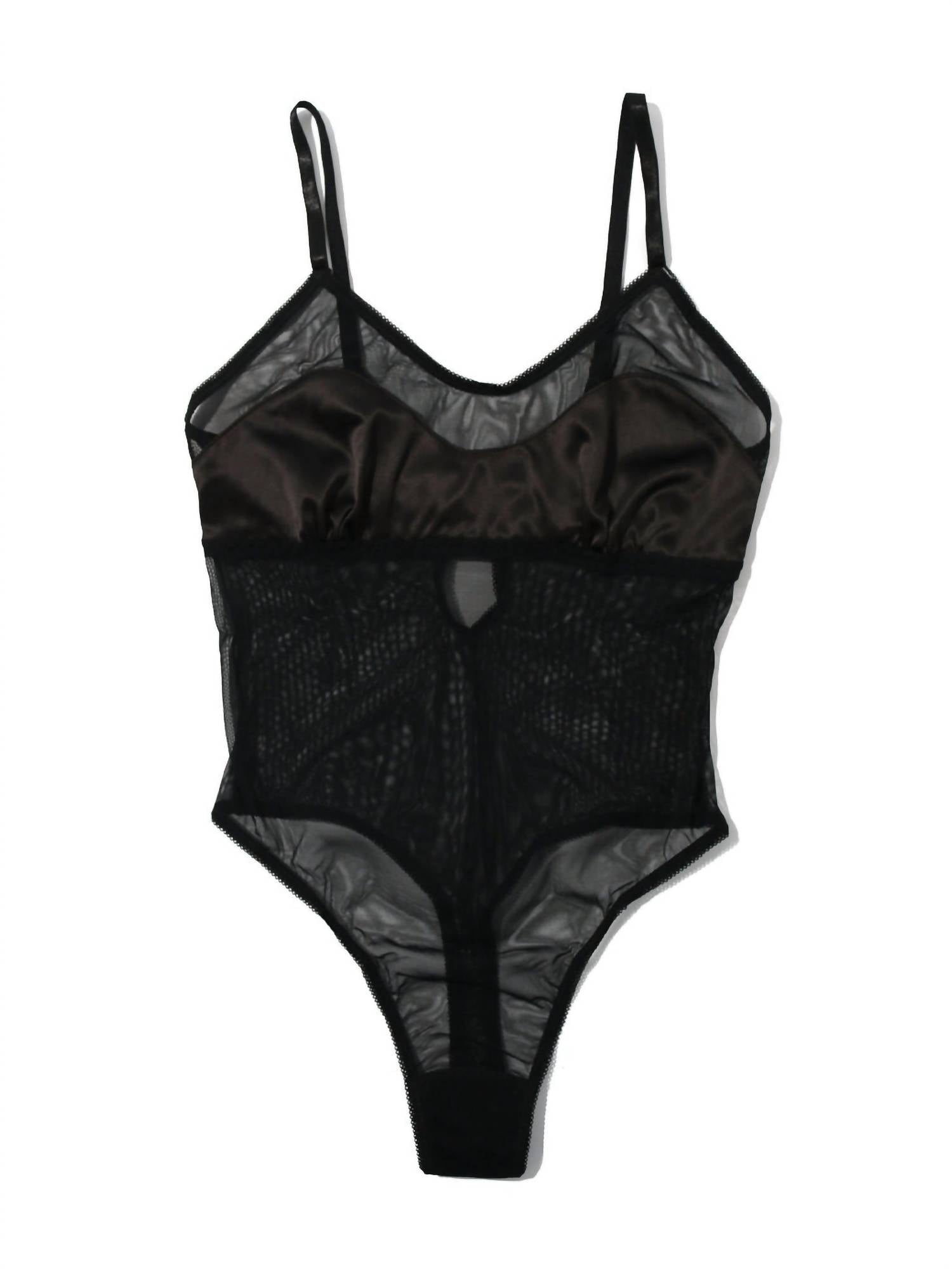 Embrace your daring side with the Dark & Dangerous Bodysuit by HANKY PANKY, a glamorous addition to your wardrobe. This sleeveless bodysuit features a luxurious stretch satin and mesh construction, with a revealing thong back that artfully teases while maintaining elegance. Composition: Satin - 95% Polyester, 5% Spandex; Mesh - 93% Polyamide, 7% Spandex; Crotch Lining - 100% Cotton. Closure: Hook and eye closure at the center back. Care: Hand wash in cool water with mild detergent, then line dry or hang to dry.