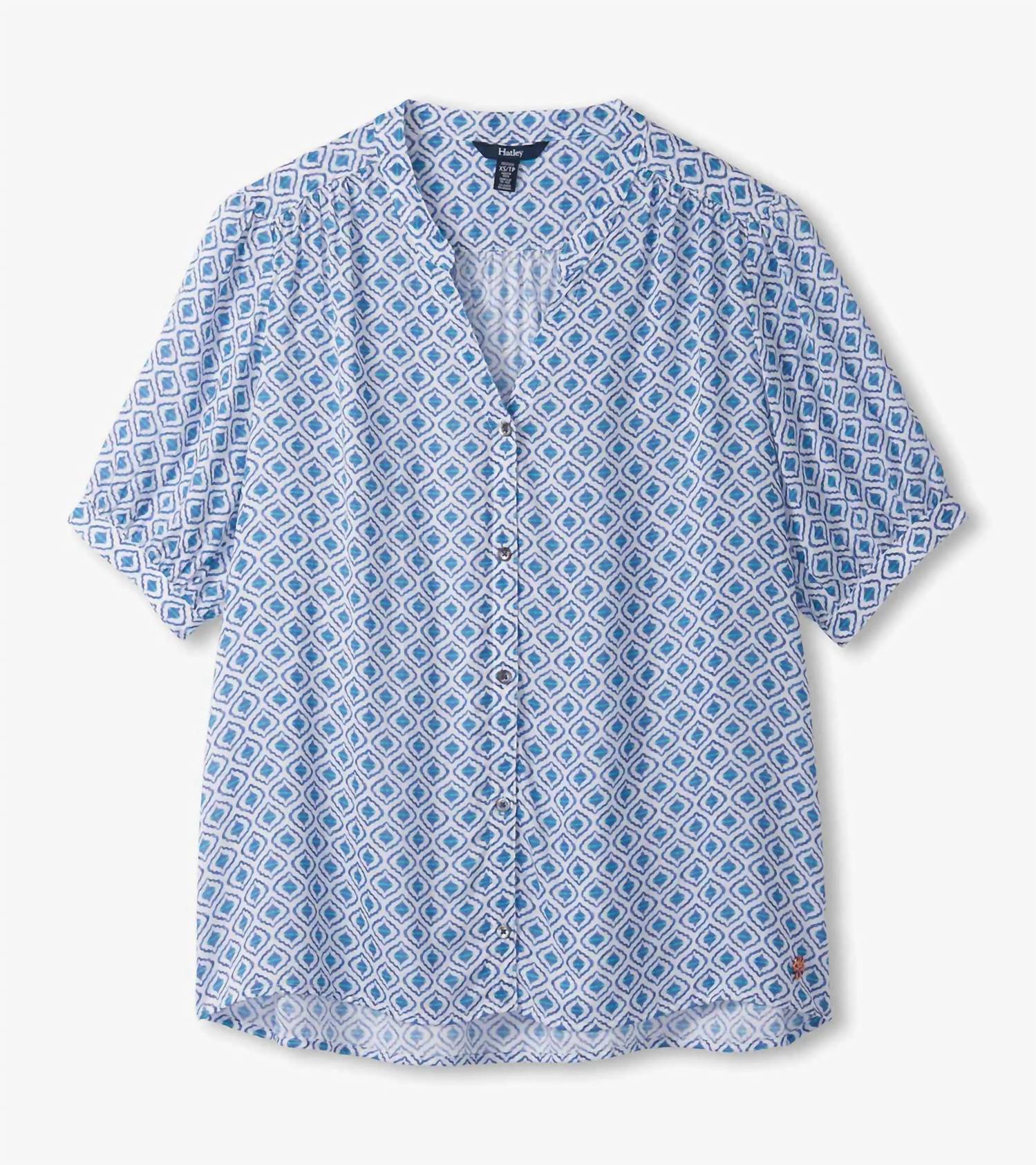 Pair this with your favorite jeans and slides for your next girls night out. Meet the Ivy Blouse by Hatley, a beautiful blend of artistry and style in the striking Painted Petals floral pattern. This short-sleeve blouse, crafted from 100% modal, offers a flowing lightweight fit with a stand collar and a convenient button closure. The piece features carefully placed pleats on the shoulders for an added touch of elegance. Care instructions are straightforward with machine wash, ensuring this blouse stays a staple in your wardrobe.