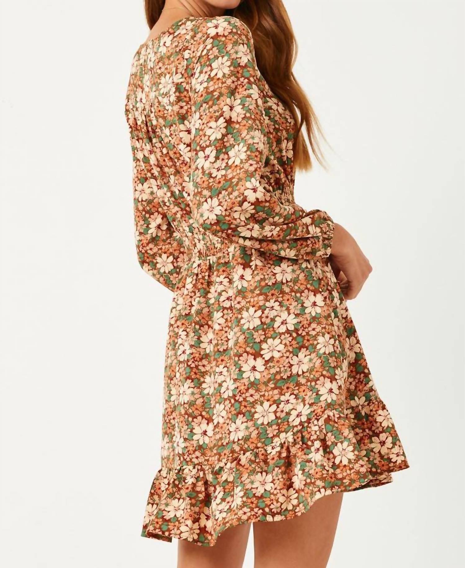 Hayden La - Floral Print Smocked Waist Button Detail Dress