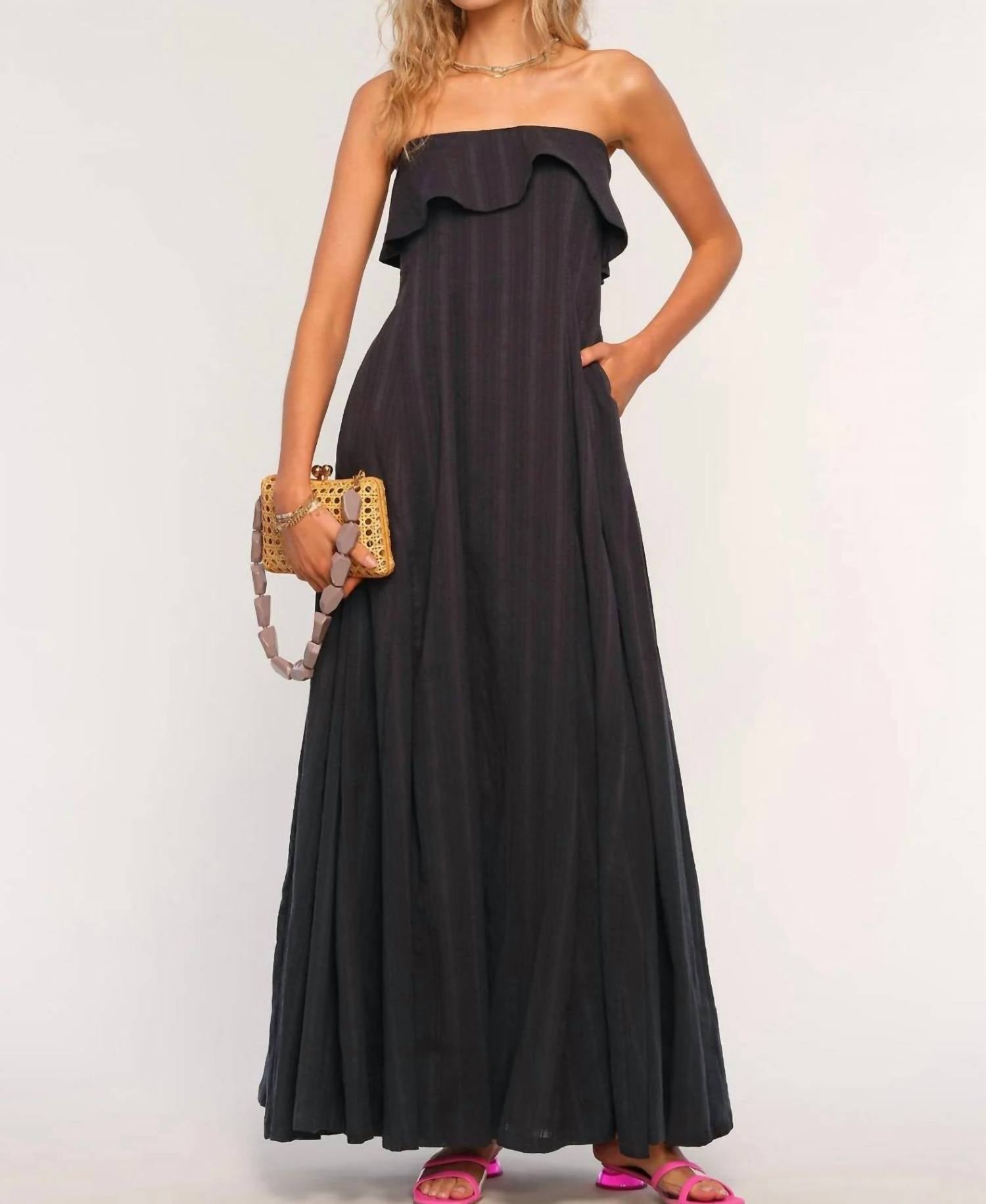 A flattering yet comfortable dress you'll be reaching for season after season. The Owen Strapless Maxi Dress by Heartloom is a sophisticated choice for any evening event, offering a flattering shift silhouette in classic black. With a strapless design, it features an elegant off-the-shoulder neckline and a relaxed fit that falls beautifully in a solid striped voile fabric, crafted entirely from 100% cotton. The dress measures 47.5 inches in length and includes convenient side pockets, making it both stylish and functional. Made with care, it is designed for machine washing, with a pull-on closure for effortless wear.