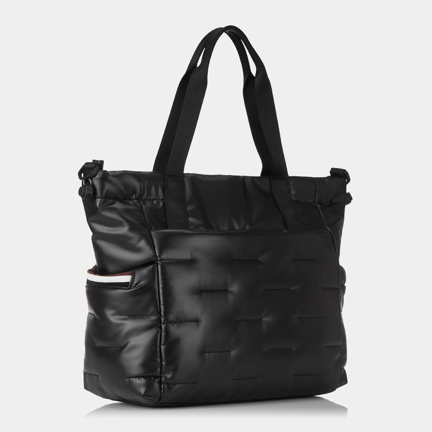 Aside from being the cutest bag ever, this tote is the perfect size to hold all of your vacation necessities. Pair this adorable bag with a flowing dress and some slides and you're all set!You know your essentials will be safe, snug and stylish in the Puffer Tote Bag, with its gorgeous quilted design that adds a little texture to your casual glam look. With colors inspired by nature and cheeky contrasting stripes, this is a bag that will support your dress-down days. This tote has space for your A4 books and papers, as well as a compartment for your water bottle and pocket for your phone. Keep your keys on the handy hook so you never lose them and detach the straps whenever you like! The luxurious exterior has been treated with water-repellent coating for extra peace of mind. H:13.4 inches. D:5.5 inches. W:13 inches. WEIGHT 1.3 lbs. VOLUME 15.7 l. OUTER BODY MATERIAL: 100% Polyester. LINING MATERIAL: 100% Polyester. INTERIOR FEATURES: 1 key hook. 1 interior zip pocket. 1 removable water-proof pouch. 2 open pockets. 1 phone pocket. EXTERIOR FEATURES: 1 zip pocket. 2 hidden zip pockets. 2 open side pockets. Adjustable and removable shoulder straps. Water repellent coating.