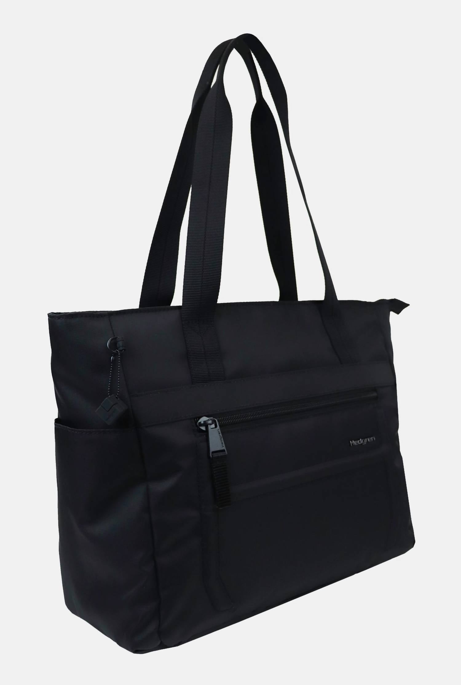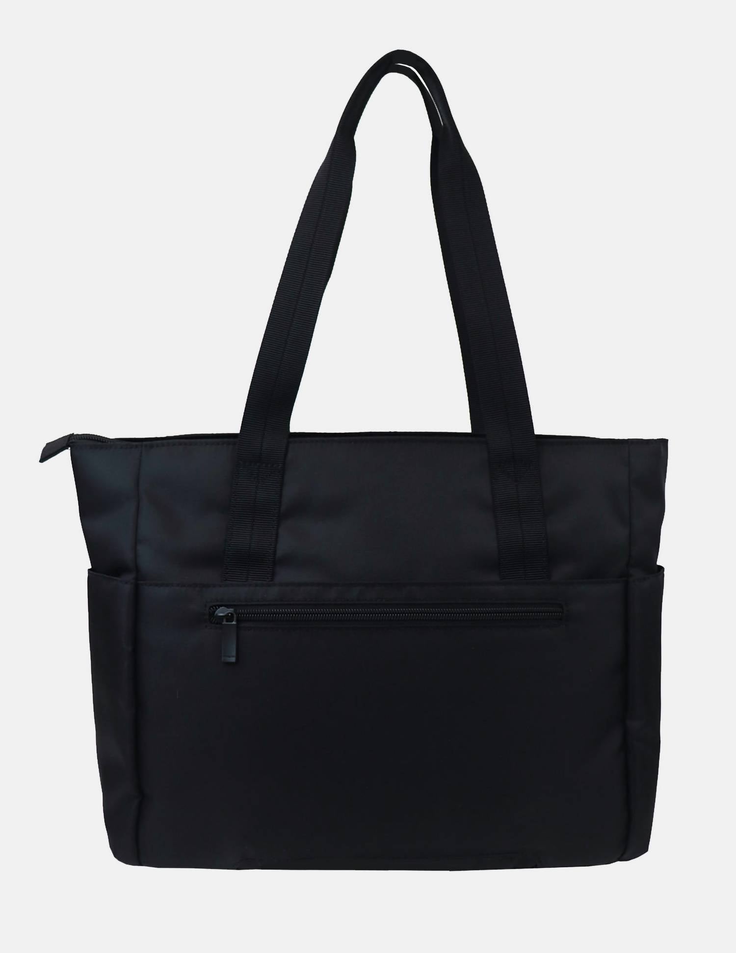 The perfect throw-it-in-and-go bag for your next weekend away or beach vacation! Its classic design will never go out of style and you'll be reaching for this bag season after season.Dimensions: H: 12.0 inches, D: 5.0 inches, W: 15.0 inches. Weight: 1.1 lbs. Materials: Outer body material: 100% RPET Polyester. Lining material: 75D RPET Polyester - 100% Polyester. Features: Interior: Large main zip compartment; 2 smaller magnetic compartments. Key chain hook. 1 interior zip pocket, 2 slip pockets. Exterior: Front and back zip pocket. Two side pockets. Smart sleeve attaches bag to luggage handle. Water repellent fabric.