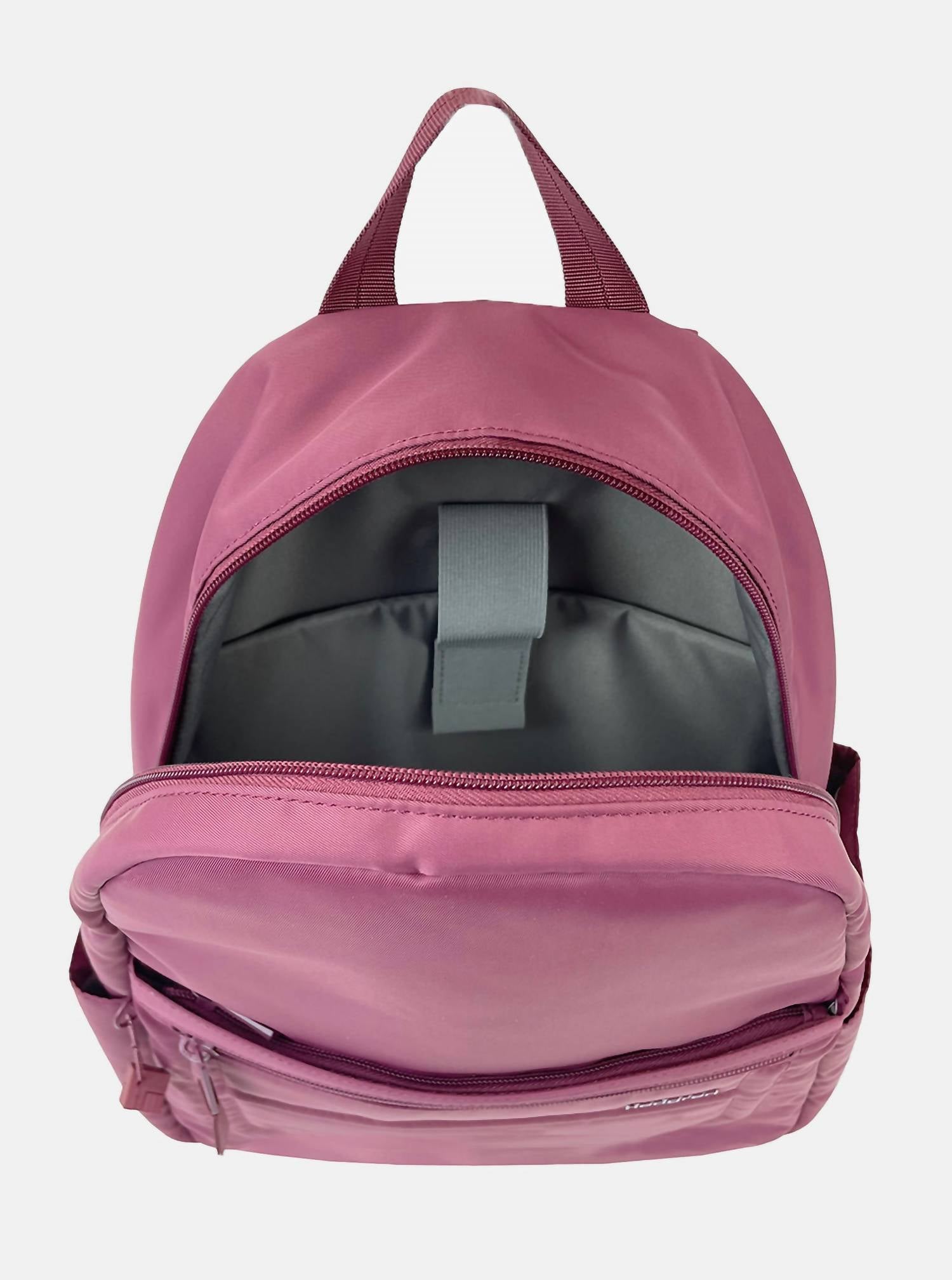 Not only functional, this backpack is stylish and fits everything you need in one place. It's a win-win!Interior Features: Padded computer pocket holds up to a 14” laptop. Key chain hook. Exterior Features: Two front zip pockets, back zip pocket. Two side pockets. Padded adjustable shoulder straps. Water repellent fabric. Dimensions: H: 15.0 inches, D: 5.75 inches, W: 12.0 inches. Weight: 1.1 lbs. Outer Body Material: 100% RPET Polyester. Lining Material: 75D RPET Polyester - 100% Polyester.