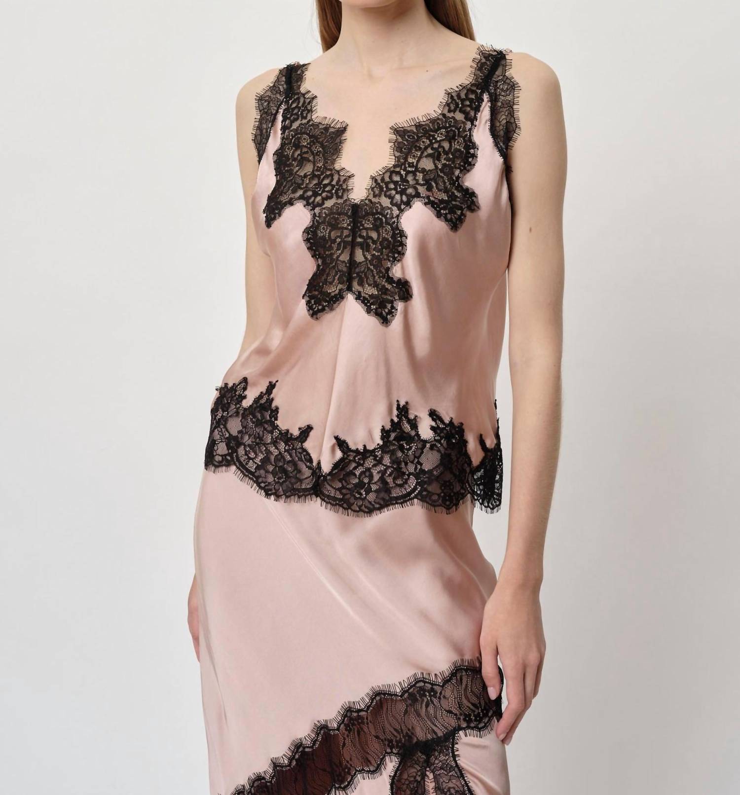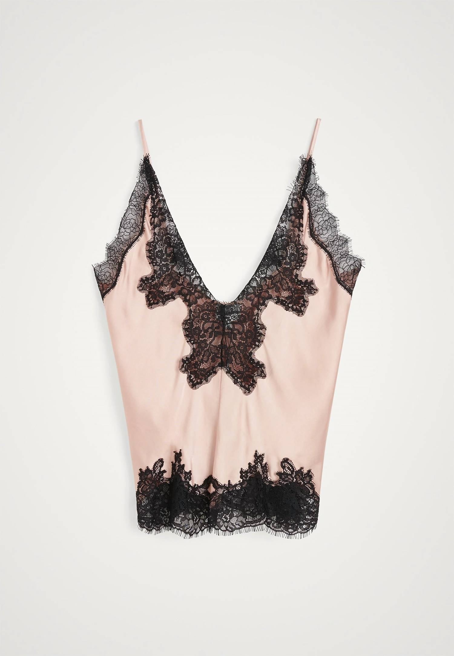 Perfect for layering or cute enough to wear it on its own. The Zew Top by Herskind is an essential camisole for summer evening events. With delicate lace details at the top and bottom, and spaghetti straps, this piece offers a romantic appeal in a powder shade. Crafted from a blend of 50% FSC Viscose and 50% Rayon, it ensures both sustainability and comfort. Designed with a convenient pull-on closure, the V-neck top channels 90s fashion nostalgia, perfect for special occasions like Valentine's Day.