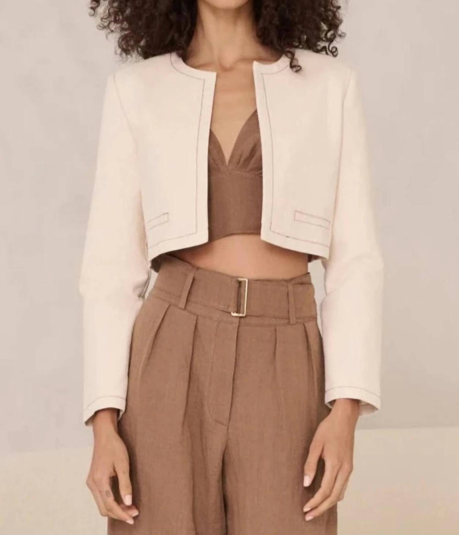 Meet the Elle Cropped Open Jacket by Hevron, a chic addition for your fall wardrobe. This solid natural jacket features long sleeves and a crewneck, crafted from 100% cotton for a comfortable fit. Styled without closure for an easy pull-on wear, it offers a true-to-size fit perfect for travel. Care is simple with machine wash and lay flat to dry instructions.