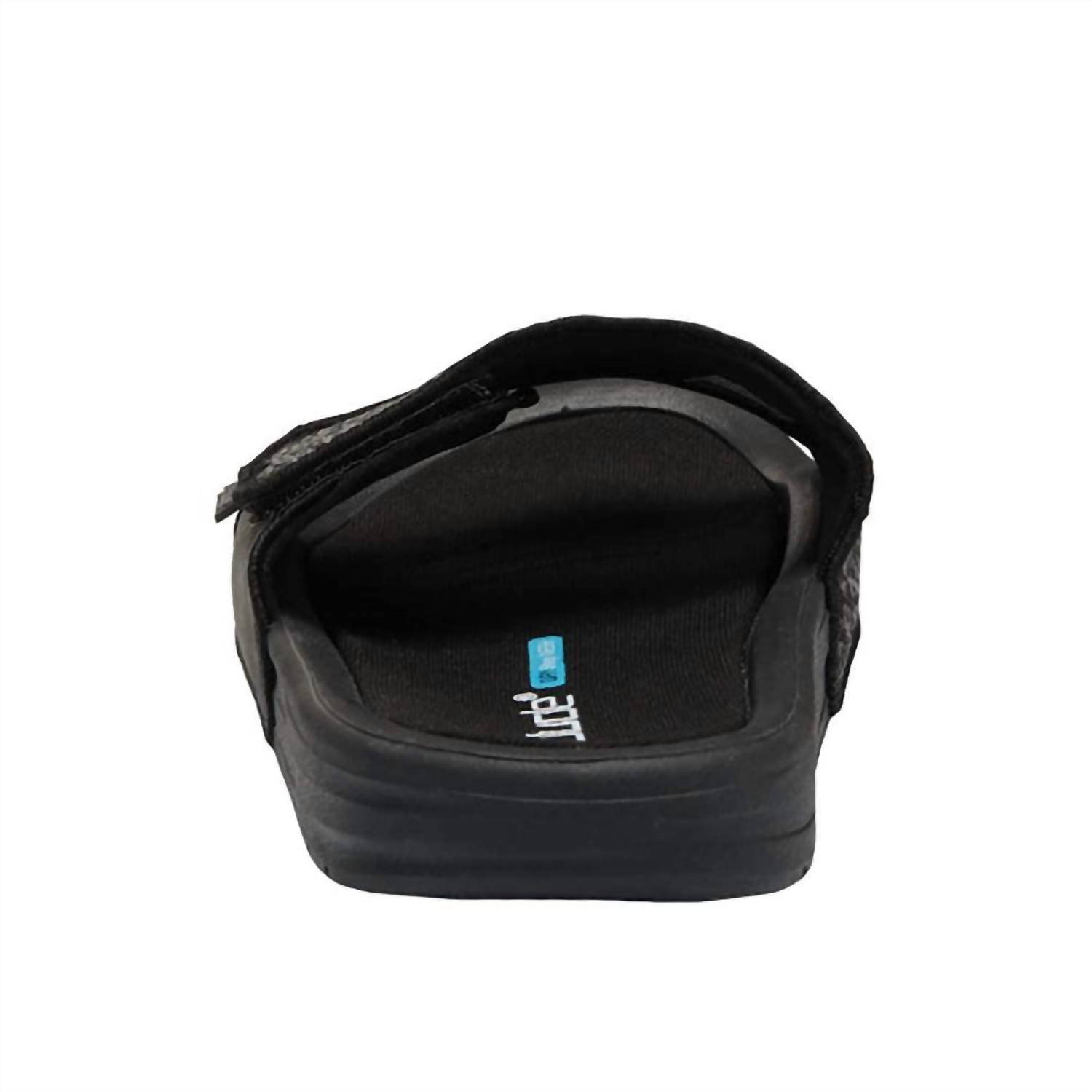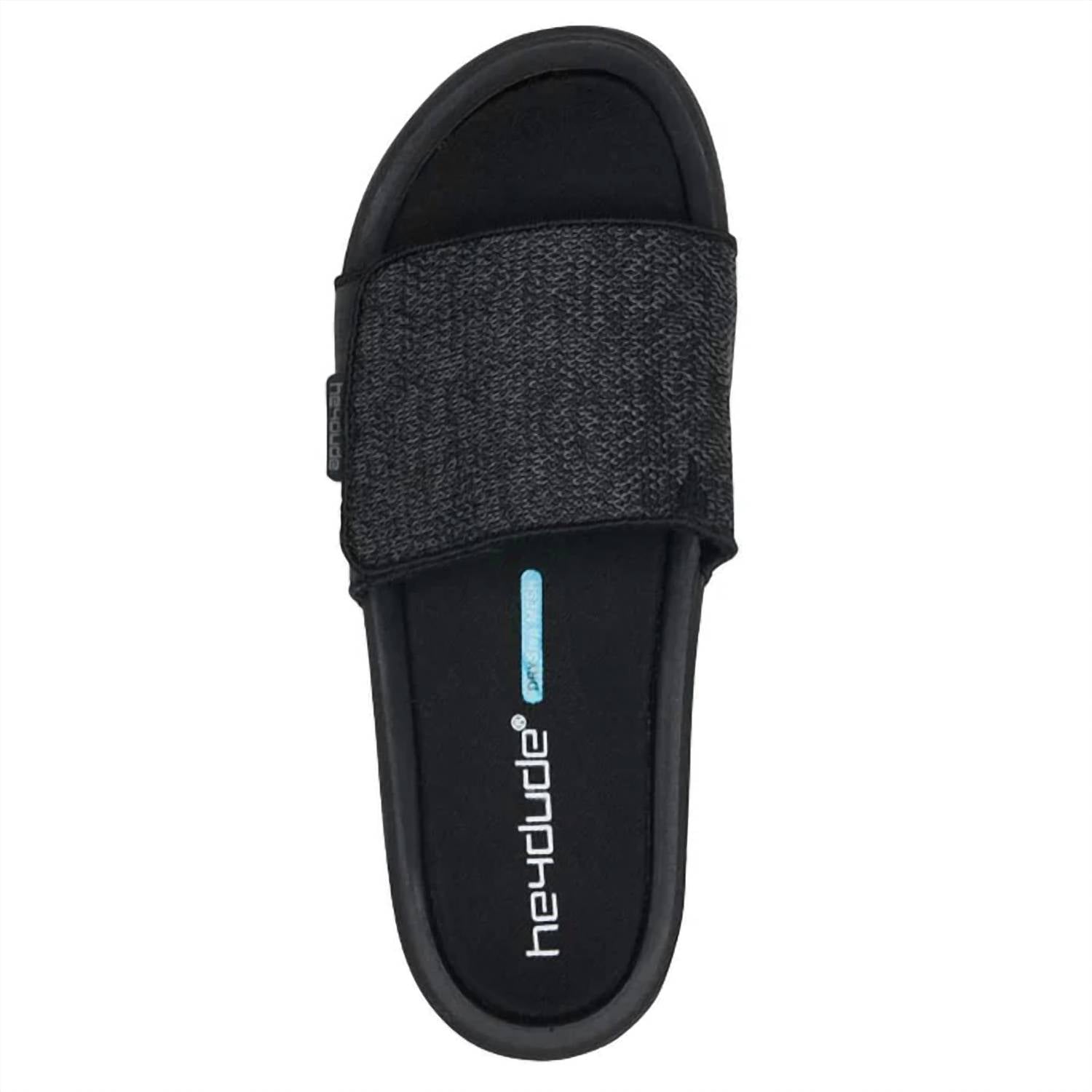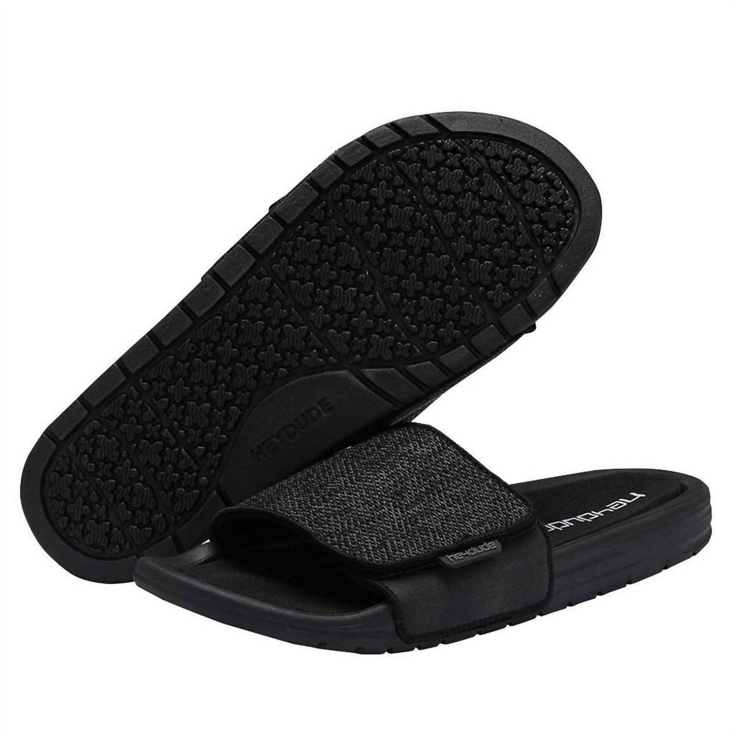 Step into the Jet Black Men's Phoenix Sox Slide Sandals by HEY DUDE, the epitome of summer streetwear comfort. Featuring an open toe design with an adjustable padded synthetic upper strap, these sandals ensure a perfect fit for any adventure. The smooth memory foam footbed and ultra-light outsole offer exceptional comfort and flexibility. Constructed with Hey Dude's Flex & Fold Technology, these versatile slides are perfect for active days.