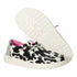 Stride into summer with the Women's Wendy Cowgirl Sparkle Slip-on Shoes by HEY DUDE, perfect for workwear or casual outings. Crafted with canvas uppers, these shoes feature playful cow print accents on the upper and heel, adding a touch of flair. The double lace closure ensures a secure fit, while the Flex & Fold sole system and removable foam insole promise all-day comfort. With a flat heel and round toe shape, these slip-ons in classic black and white are an effortlessly stylish choice for the warmer seasons.