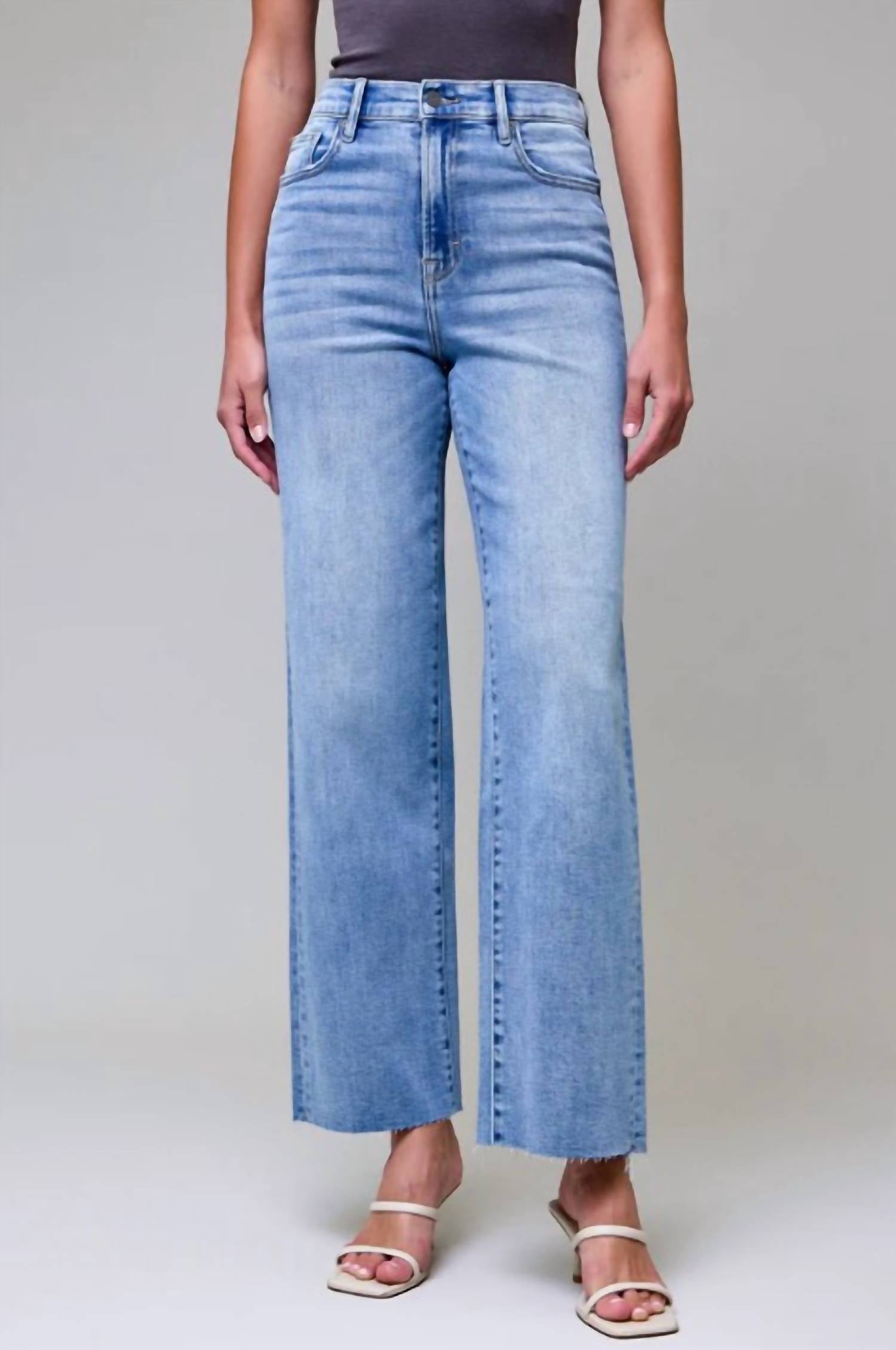 Pair these straight leg jeans with flats, sandals or even heels! You can't go wrong. Embrace laid-back elegance with the Logan Medium Light Wash Clean Stretch Dad Jean by HIDDEN, tailored for women seeking both style and comfort. This sleek, slim fit straight leg jean in blue features a mid-rise waist with a rise of 11.5 inches and a practical button closure. Crafted from a cotton blend, it includes pockets for added convenience and effortlessly pairs with any streetwear outfit. Designed with a 31-inch inseam, these patterned jeans make a statement at holiday parties or casual outings.