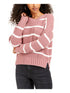 Hippie Rose Women's Striped Long Sleeve Crew Neck Sweater Pink Size Medium