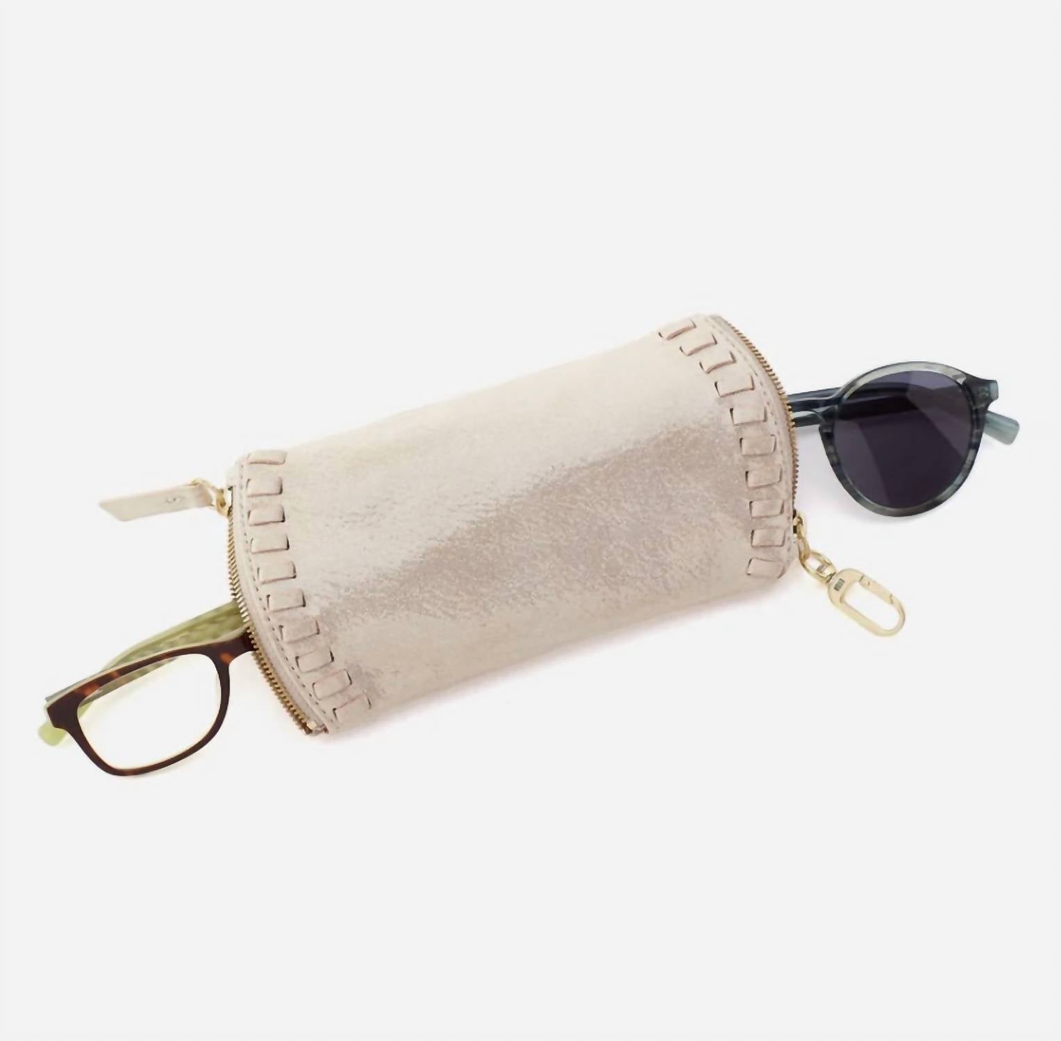 Upgrade your eyewear collection with these stunning sunglasses, meticulously designed to offer a perfect balance of style and functionality. Protect your eyes in style! The HOBO Women's Spark Double Eyeglass Case in Sand Shimmer is the perfect blend of style and practicality, designed to hold two pairs of eyeglasses. This case features brushed gold hardware and an elegant sandlewood lining, ensuring your sunnies and readers are stored safely and stylishly. Measuring 6.5" W x 4" H x 0.5" D, the compact design includes a secure zip closure and an added clip for easy attachment to your bag or keychain. Enjoy the luxury of metallic leather with whipstitch detailing, offering a touch of shine to your accessory collection.