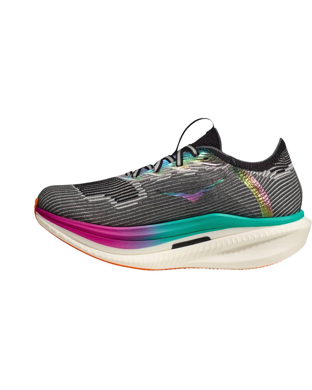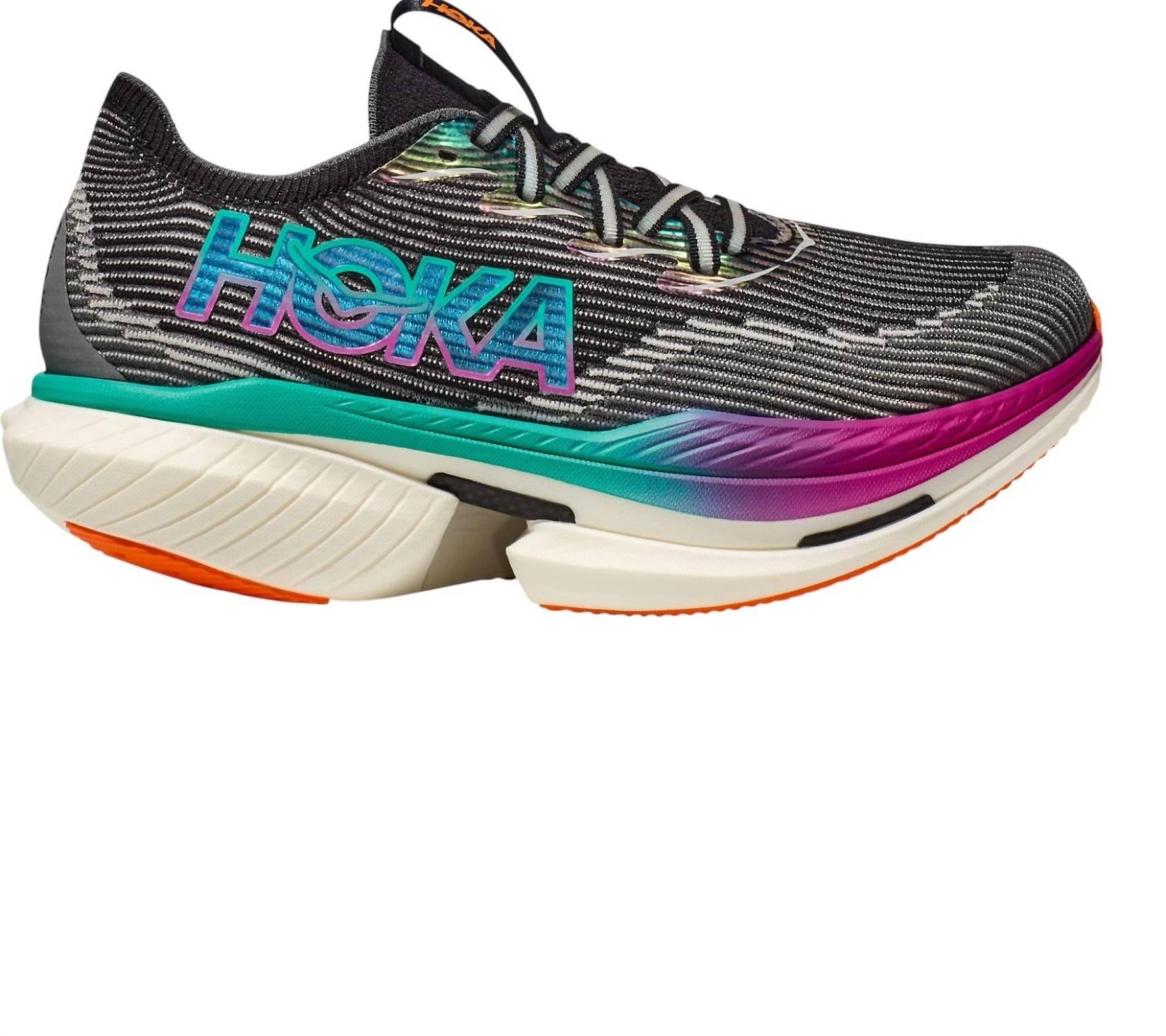 Discover the HOKA Men's Cielo X1 Shoes in Black/Electric Aqua, designed for elite-level racing with innovation at every step. Crafted with a breathable knit upper, this athletic masterpiece boasts a lightweight design, featuring dynamic cutouts and minimal rubber outsole for unmatched agility and traction. The shoe incorporates a winged carbon fiber plate and resilient PEBA foam for enhanced propulsion and stability. With an asymmetrical, gusseted knit tongue and round toe shape, expect a secure midfoot lockdown and effortless entry.