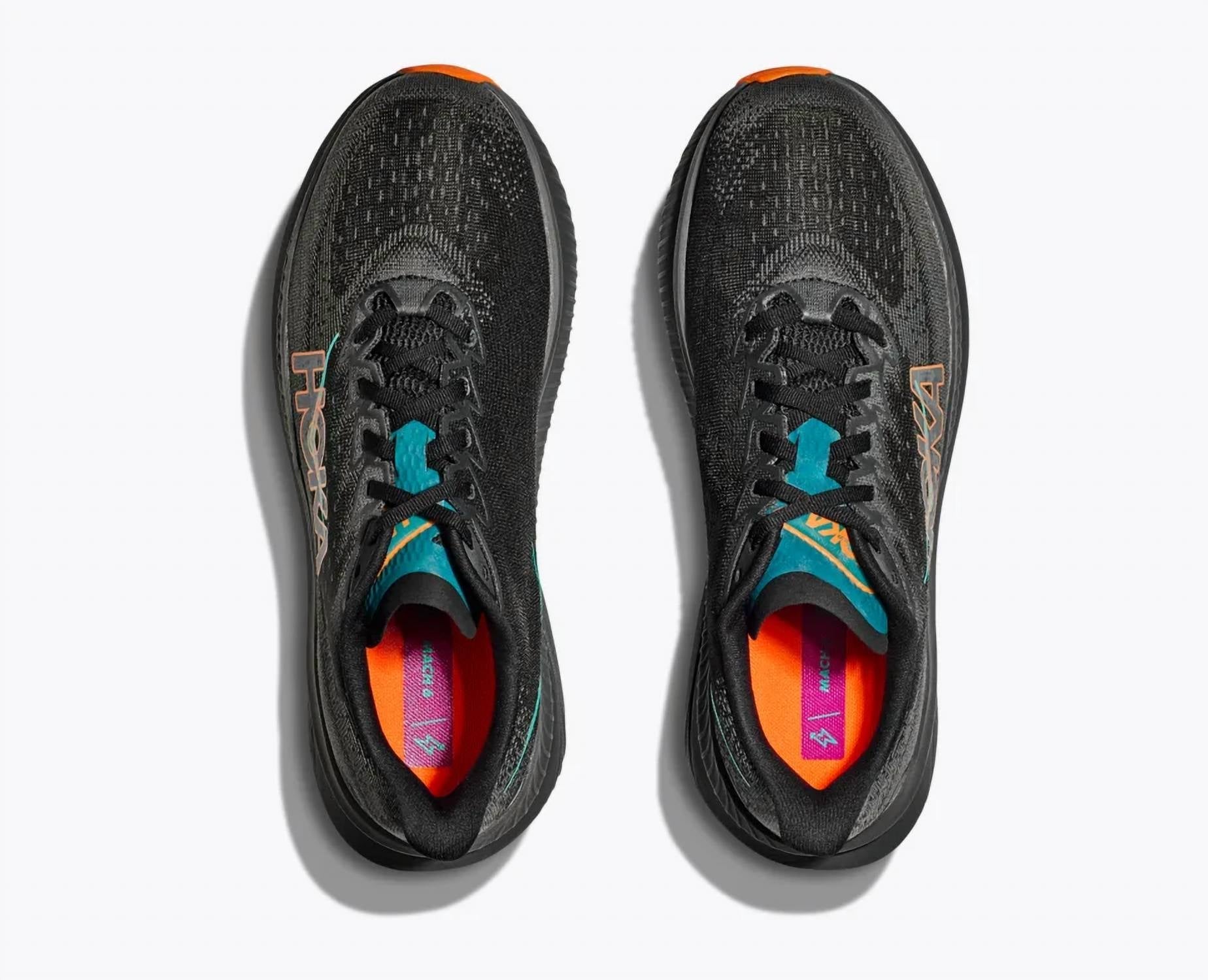 Elevate your running experience with the Men's Mach 6 Running Shoes by Hoka, offered in a sleek Black/Electric Tangerine. These neutral stability trainers boast a lightweight design, weighing just 7.4 oz with a 5 mm heel-toe offset, ensuring quick and responsive movement. The creel jacquard upper with zonal breathability and dual internal gussets provide a snug, comfortable fit, complemented by a super critical foam midsole for enhanced energy return. Best for everyday runs and races, this shoe is crafted with strategic rubber outsole coverage for improved durability.