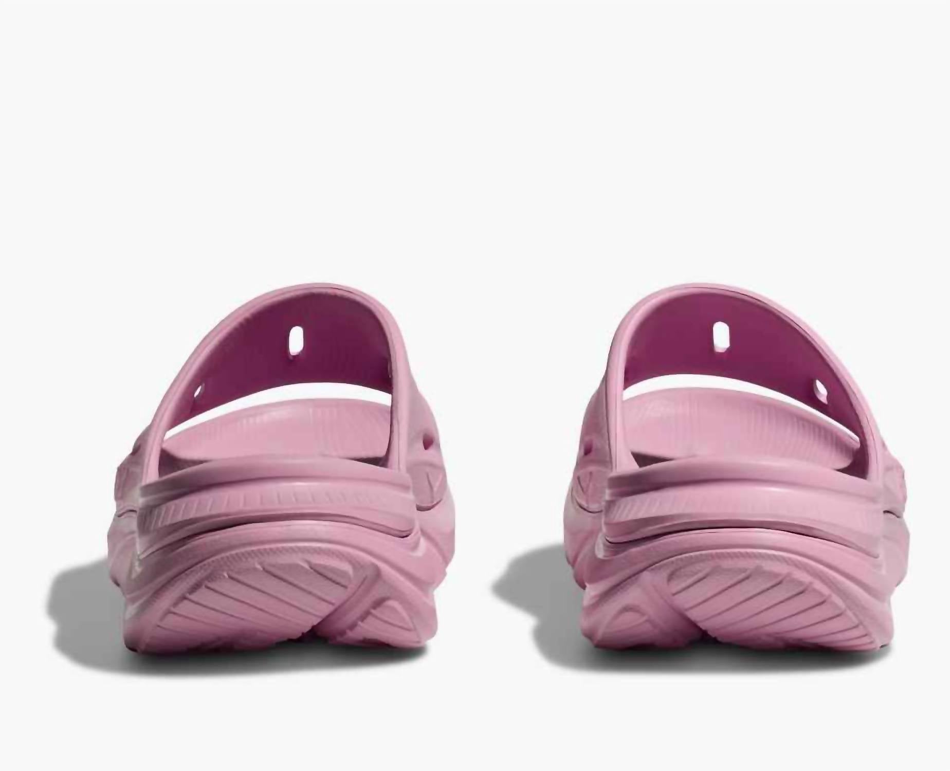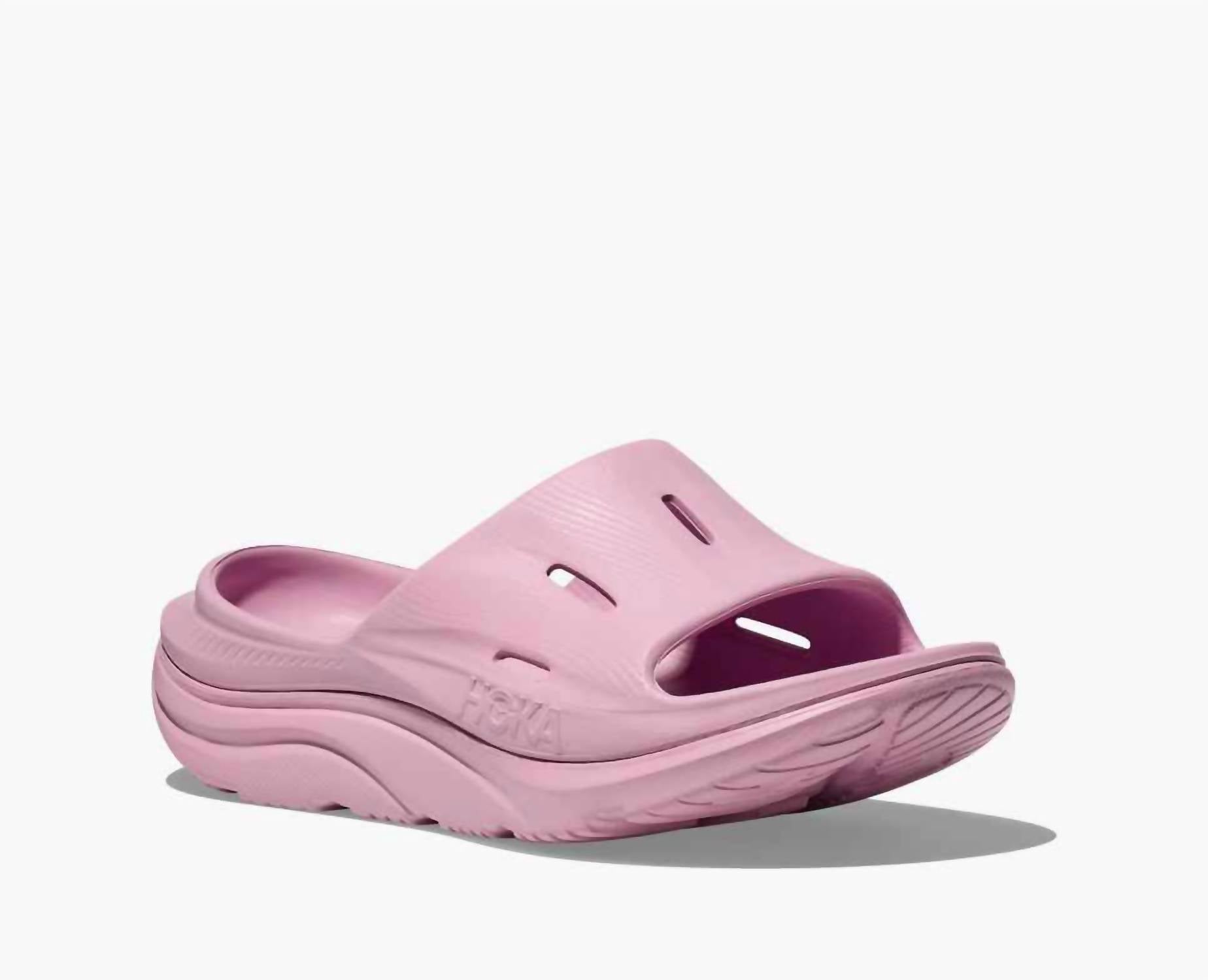 Flowy dresses, cropped pants, and even jumpsuits... this sandal works with them all! Experience post-run bliss with the Hoka Unisex Ora Recovery Slide in Pink Twilight, a perfect addition to your summer athleisure wardrobe. This sandal is crafted with a rubber construction and features an open toe shape with a flat heel, making it ideal for travel and lifestyle activities. Its standout attributes include ventilated air flow channels, a dual-density geometry, and an injection-molded sugarcane EVA midsole. Each slide weighs 7.80 ounces and offers a heel-to-toe drop of 6 mm, ensuring lightweight comfort with every step.