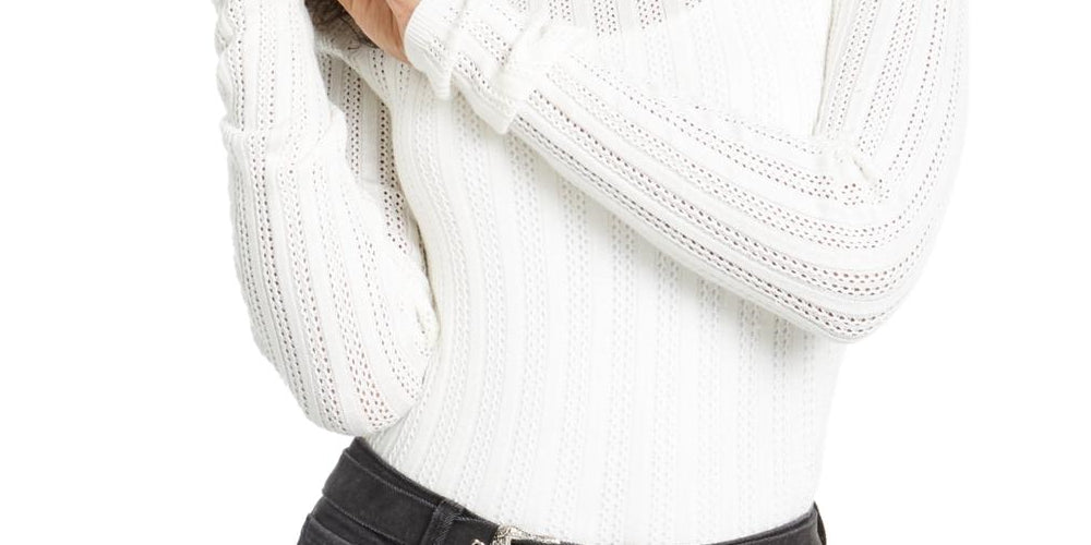 Hooked Up By IOT Junior's Knit Open Stitch Crewneck Sweater White Size Medium