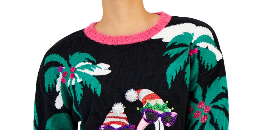 Hooked Up by IOT Junior's Sequined Embroidered Sweater Black Size Medium
