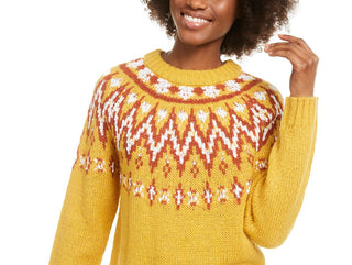 Hooked Up Juniors' Fair Isle Crewneck Sweater Yellow Size Medium