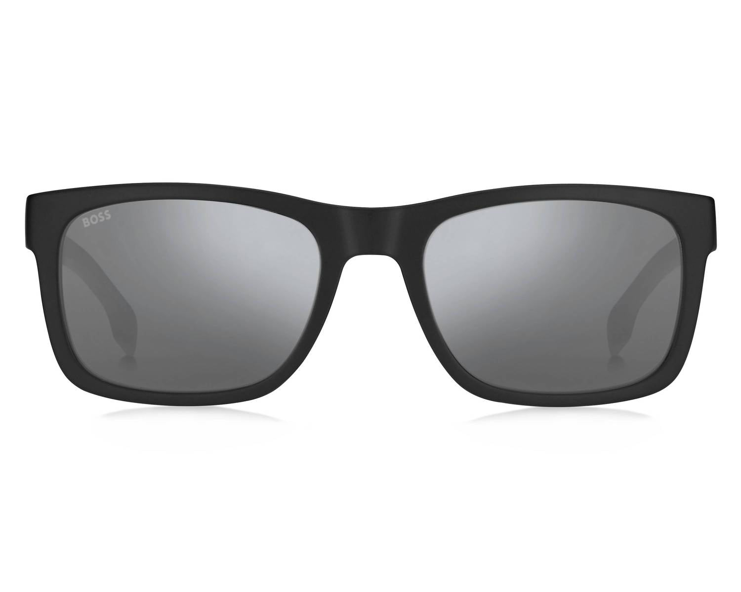 Experience luxury with the Hugo Boss Men's 1569/s Square Sunglasses, designed for modern elegance in a matte black frame with striking silver Sp lenses. These sunglasses feature a lens width of 55 mm, a bridge of 20 mm, and a temple length of 145 mm for a comfortable fit. Made from durable plastic, they offer UV protection level 3 to shield your eyes from the sun's harmful rays. Embrace both style and quality with these meticulously crafted sunglasses.