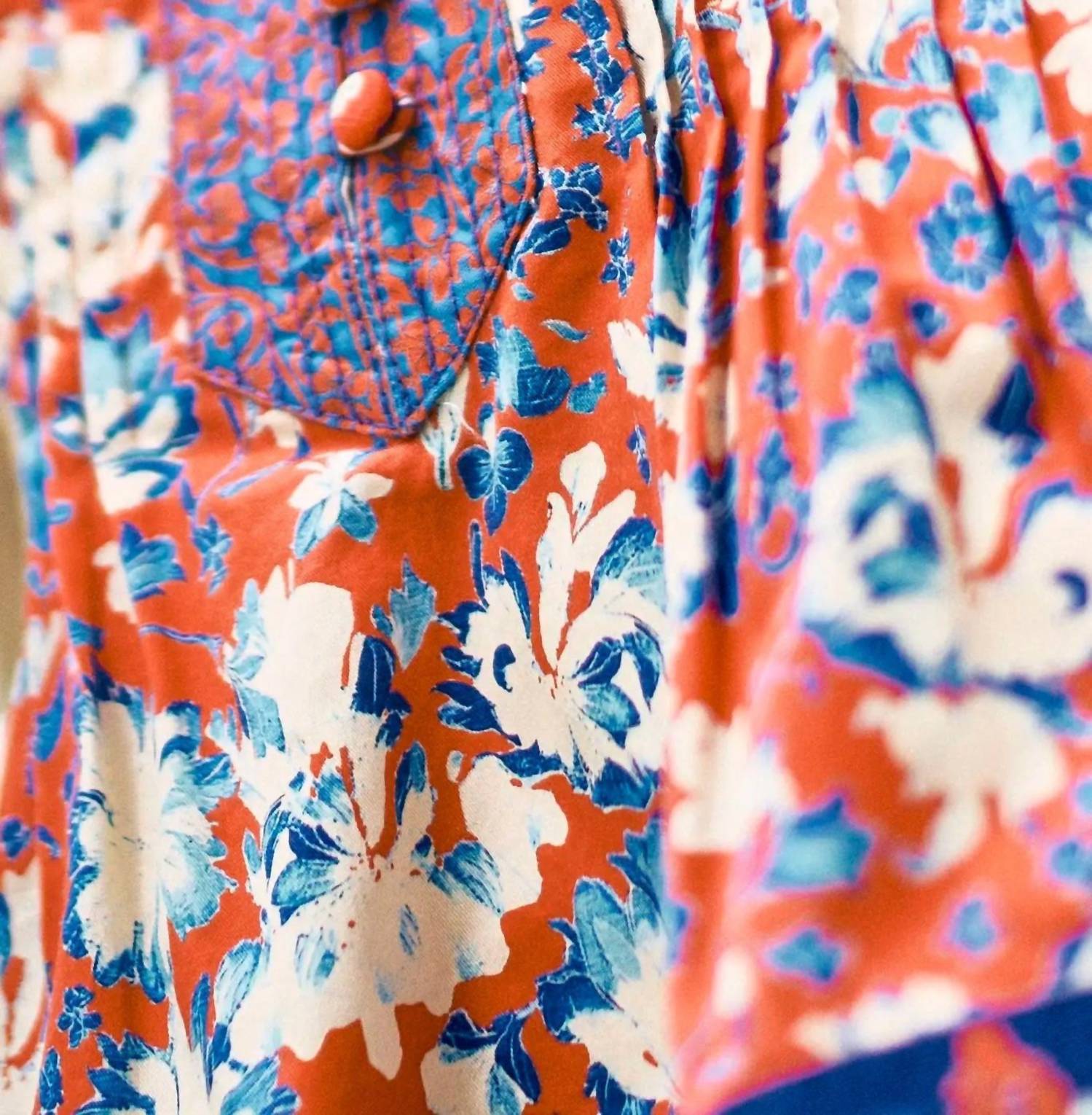 Pair this with your favorite jeans and slides for your next girls night out. Introducing the Lola Top by HUNTER BELL, a stylish choice in Tapestry Floral perfect for sun-kissed days. This women's blouse, made from 100% lightweight cotton twill, showcases cap sleeves with a flattering V-neckline and pintuck details. Its cropped, boxy silhouette measures 20" from the top of the shoulder, offering a breezy fit ideal for vacation moments. Closure: Button Closure. Care: Machine wash, tumble dry.