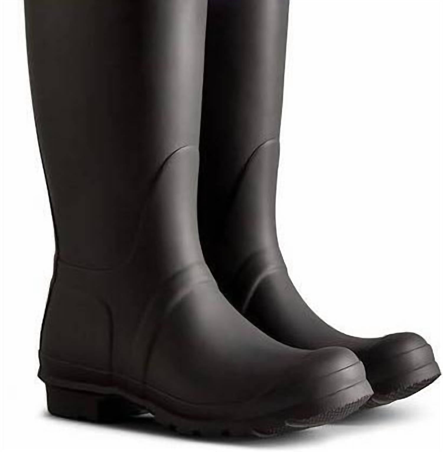 Rainy day? No problem! The cutest and most comfortable rainboots of the season. Introducing the Women's Original Tall Colour Block Boot by HUNTER, a stylish and functional choice for rainy days. With a calf-height stem and a tube circumference of 14.75 inches, this boot offers both comfort and style. Crafted with a rubber sole, outer material, and featuring a rubber upper with recycled polyester textile lining, it promises waterproof protection and durability. Heel height is a manageable 1 inch, and it comes with a removable insole for added convenience. Choose whole sizes only; half sizes should order one size up. Color: Black/Tempered Mauve. Imported.