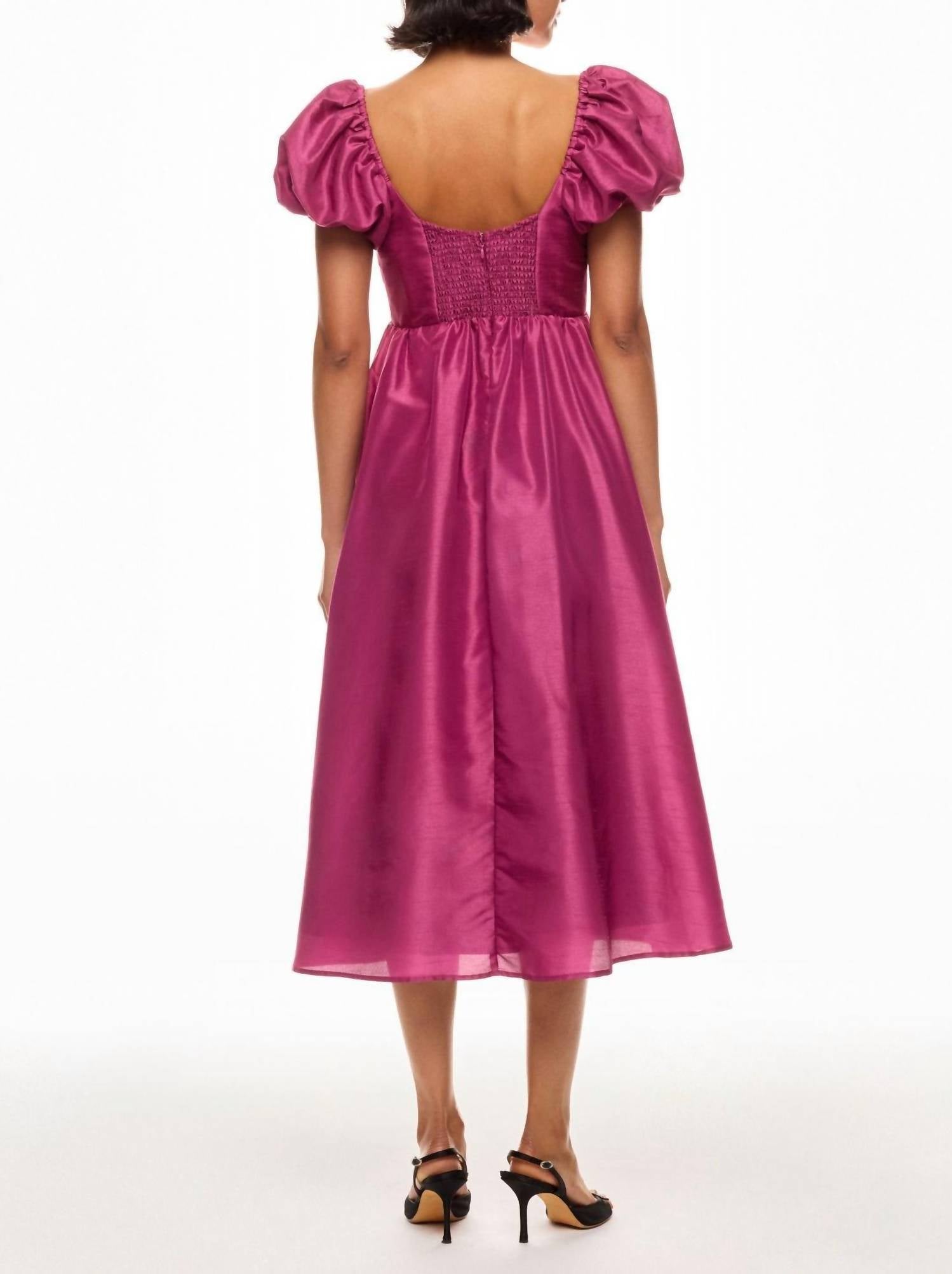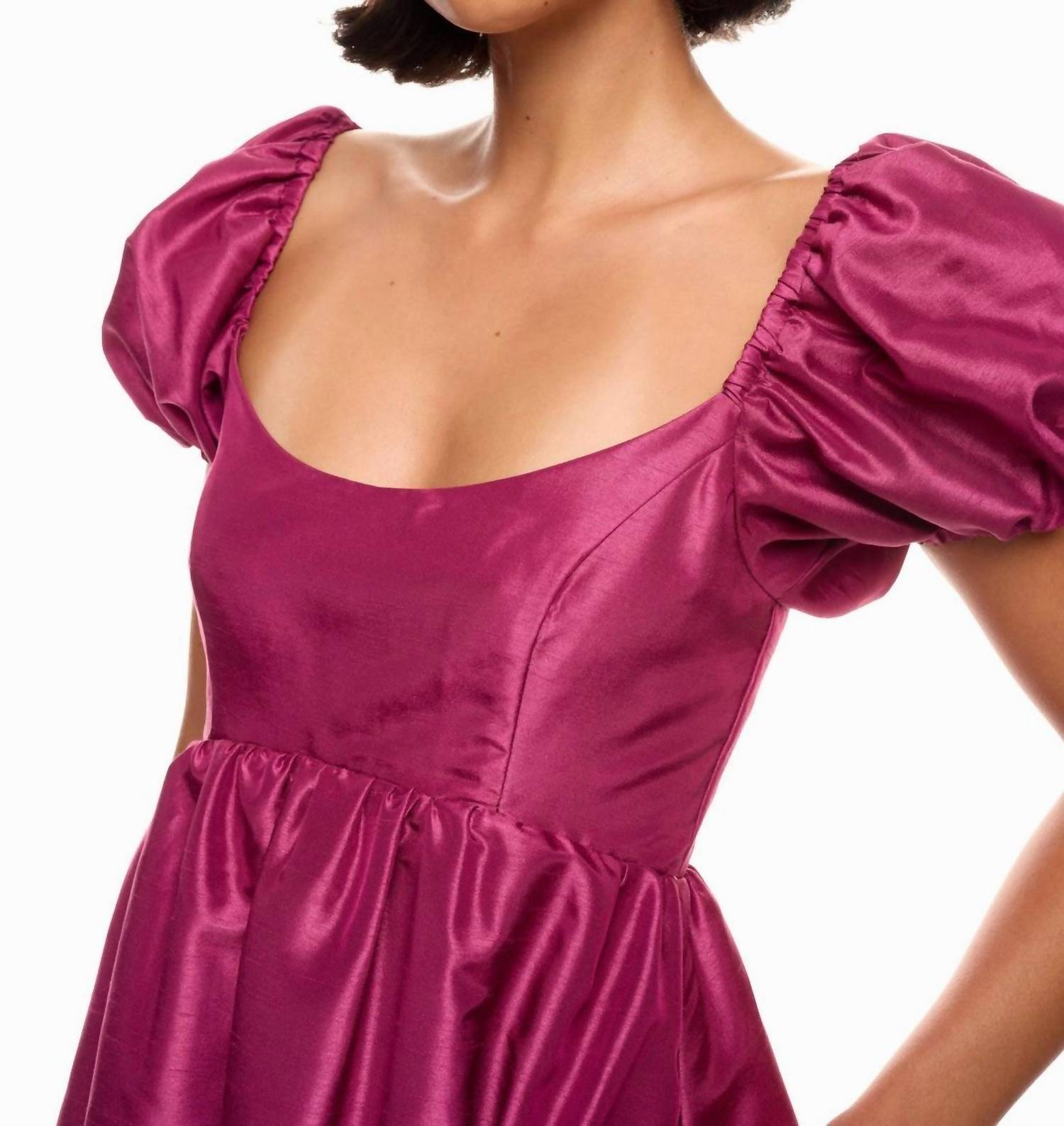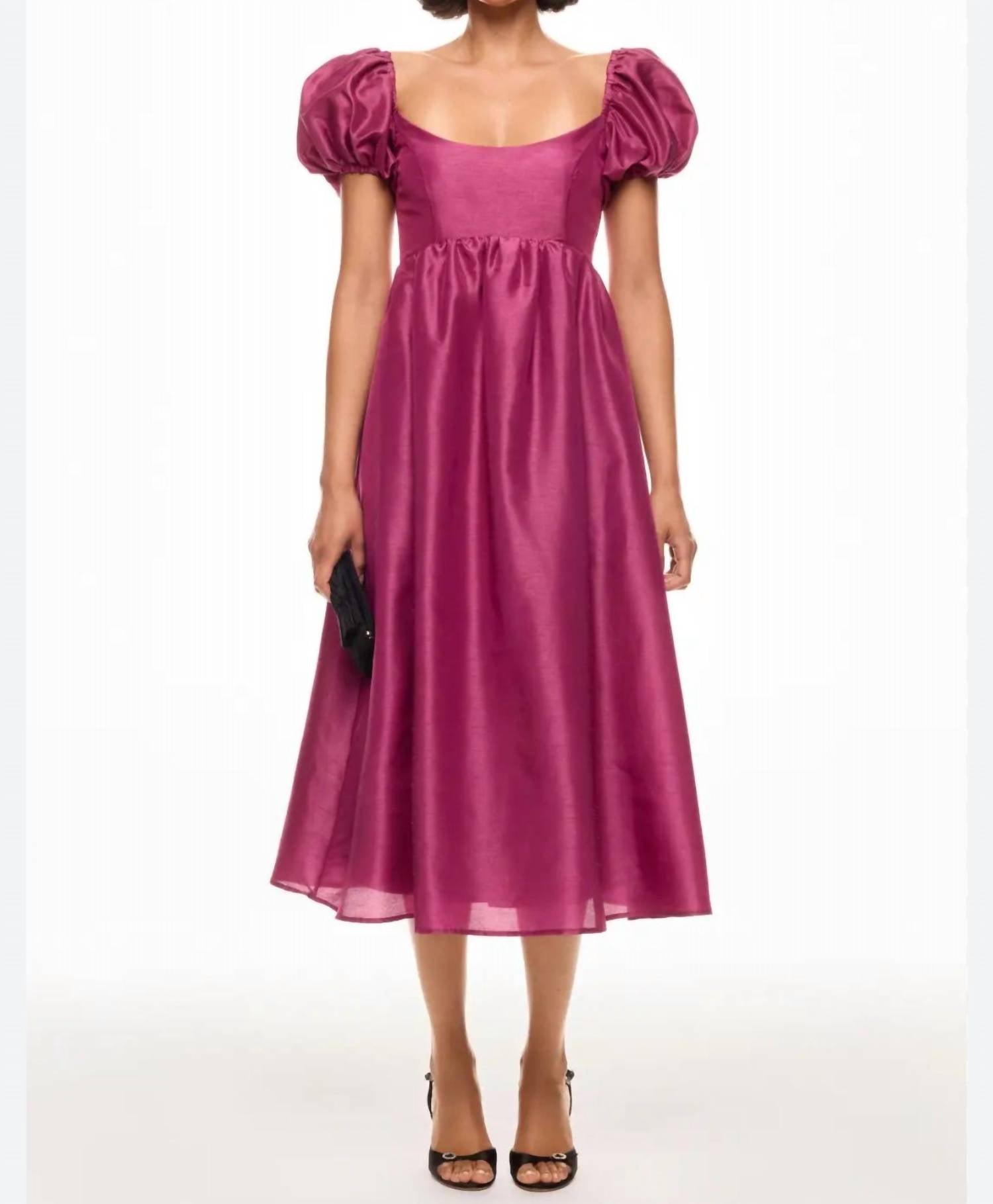 Elevate your cocktail party look with the Marian Fit And Flare Dress by Hutch, showcasing romantic short puff sleeves and a flattering square neckline for a vintage-inspired allure. This solid wine/plum dress, crafted from 100% polyester, offers a sleek silhouette with its side zipper closure. Measuring 49" from shoulder to hemline, this midi dress is designed to gracefully complement your figure. Care instructions recommend machine washing for easy maintenance. Sized XS-XL, the model is wearing a size small and stands 5'10" tall.