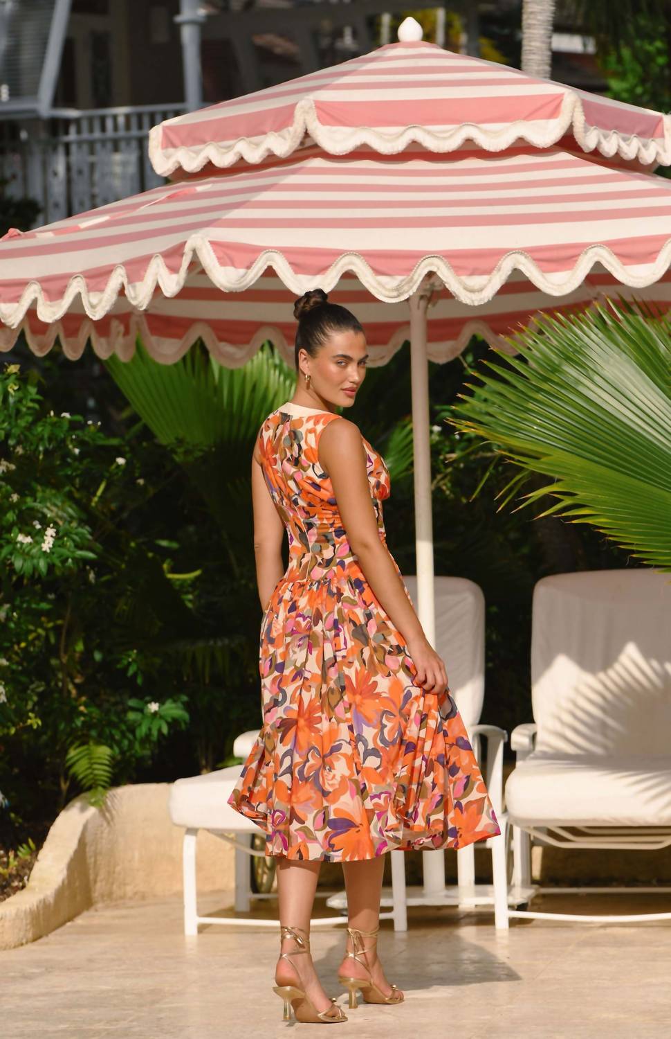 The kind of easy and flattering dress you'll be reaching for all season long. The Women's Indy Dress by Hutch is a vibrant addition to your vacation wardrobe with its eye-catching orange/blush tropical pattern. This sleeveless mini dress features a V-neck and an A-line silhouette that exudes vintage charm. Designed for summer occasions, it secures with a button closure for easy wear. Please follow specific care instructions as washing and drying guidelines are unspecified.