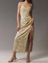 Shimmer in style with the Tylia Dress by Hutch, a captivating piece in Sky Floral. This maxi dress, designed with spaghetti straps and a scoop neckline, showcases a ruched bodice enhanced by all-over sequin embellishments and a graceful side slit. Made from polyester chiffon with a polyester lining, it features an invisible back zip closure. For care, this imported dress should be professionally cleaned to maintain its luxurious appeal, perfect for a boho chic summer vacation.