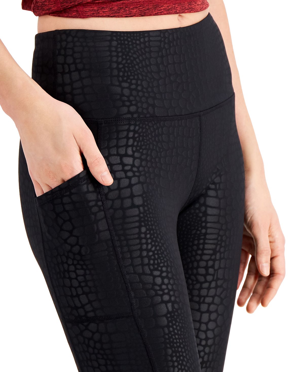 Bring cool style and texture to your workout with ID Ideology's croc-embossed high-rise leggings styled with a convenient pocket at the side.| High rise; ankle length; approx. inseam; 25| Elastic waist; cellphone pocket at side panel | | Polyester (45% recycled)/polyester/spandex| Machine washable| Imported