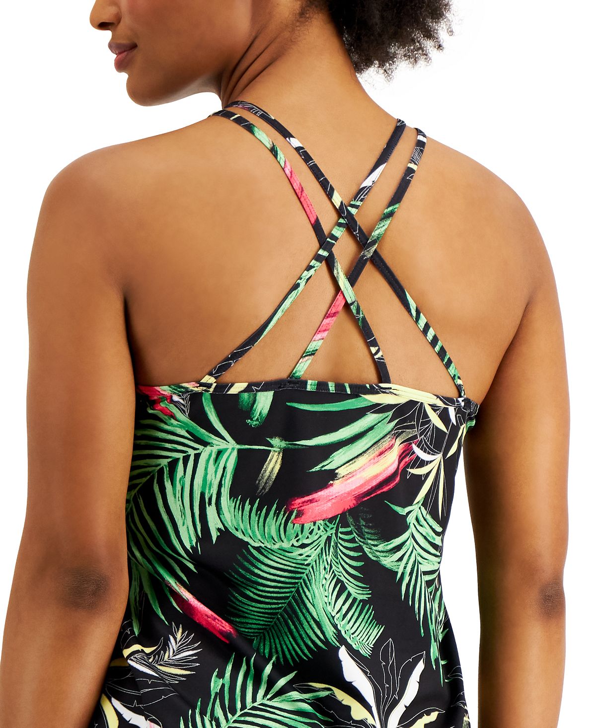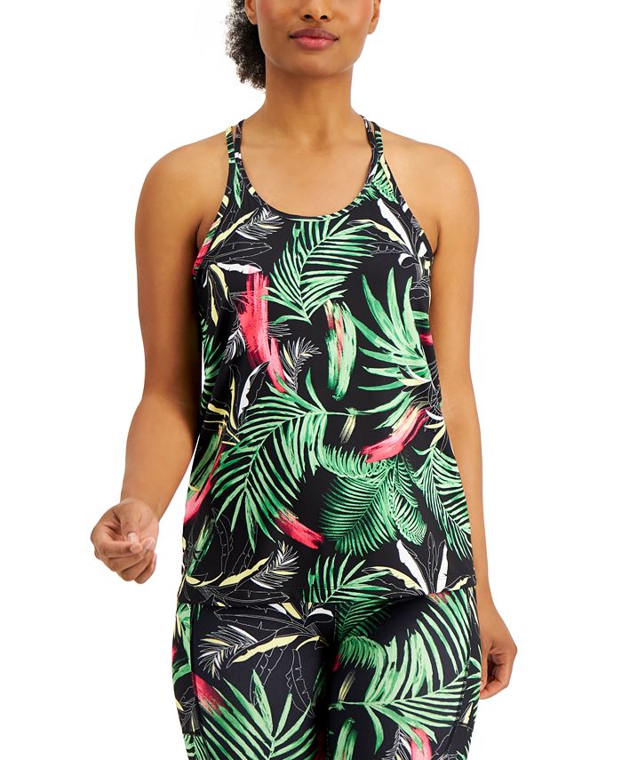 ID Ideology Women's Pastel Palms Strappy Tank Top Black Size XX-Large