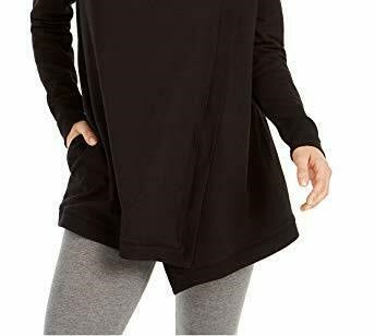 Approx. model height is 5'9" and she is wearing a size small|High neckline for added coverage|INSPIRED FOR: Athleisure/walking|Stand collar with snap closure; asymmetrical hem|Pockets at sides|Cotton/polyester