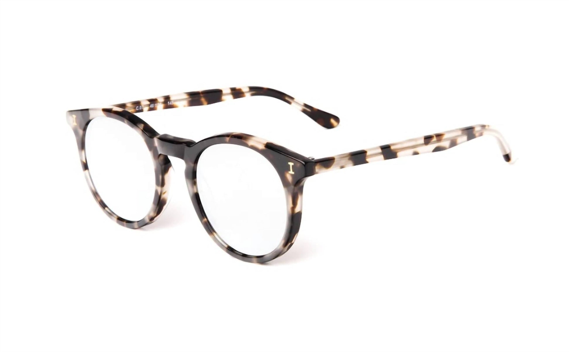 Introducing the Women's Sterling Round Sunglasses by Illesteva, featuring a timeless rounded shape with a modern keyhole nose bridge. These sunglasses accommodate medium faces and adapt seamlessly to any season or occasion. Handmade in Italy, they boast a chic white tortoise frame with silver flat mirror lenses that offers a flattering and comfortable fit for daily wear.Height: 2in / 5cm, Arms: 145mm, Bridge: 21mm, Lens Width: 48mm, Width: 5.5in / 14cm