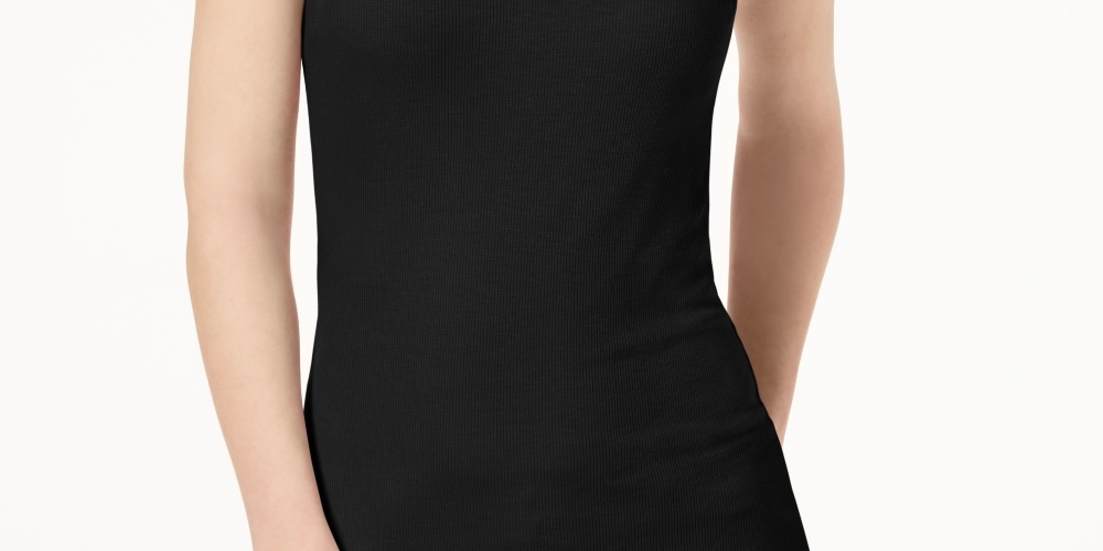INC International Concepts Women's Ribbed V Neck Top Black Size Large