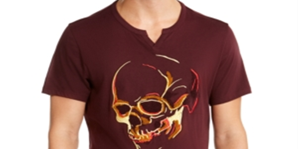 INC International Concepts Men's Cotton Embroidered Graphic T-Shirt Wine Size S