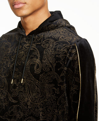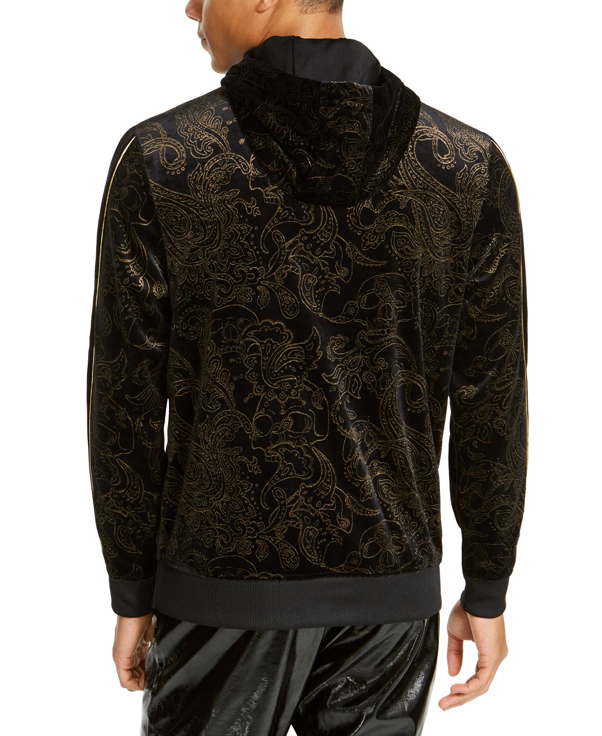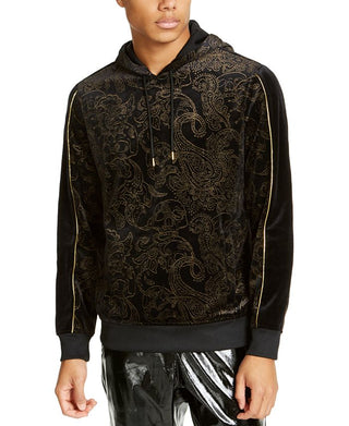 INC International Concepts Men's Sweater Metallic Velvet Pullover Hooded Black Size Small