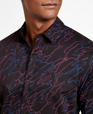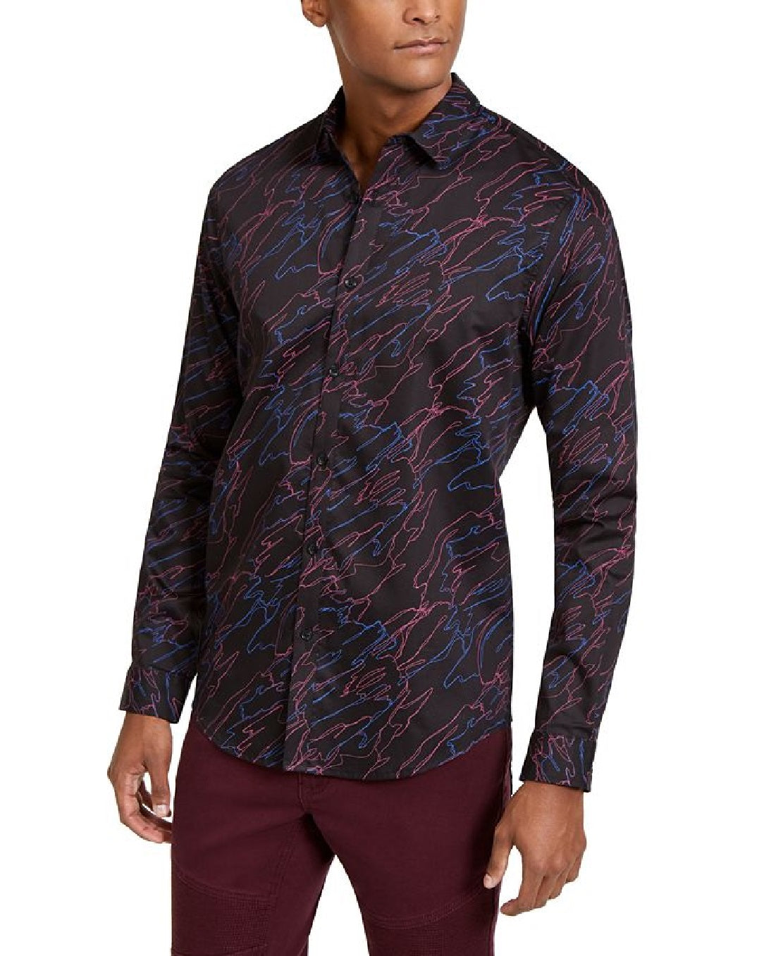 INC International Concepts Men's Sylas Print Woven Button Down Shirt Black Size Medium