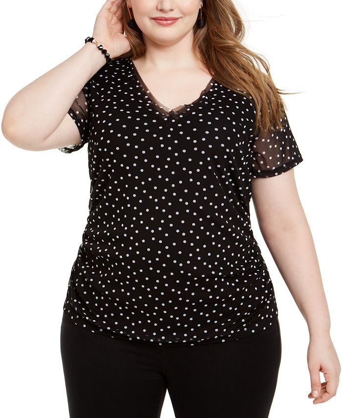INC International Concepts Plus Size V-Neck Top Black Size 1X