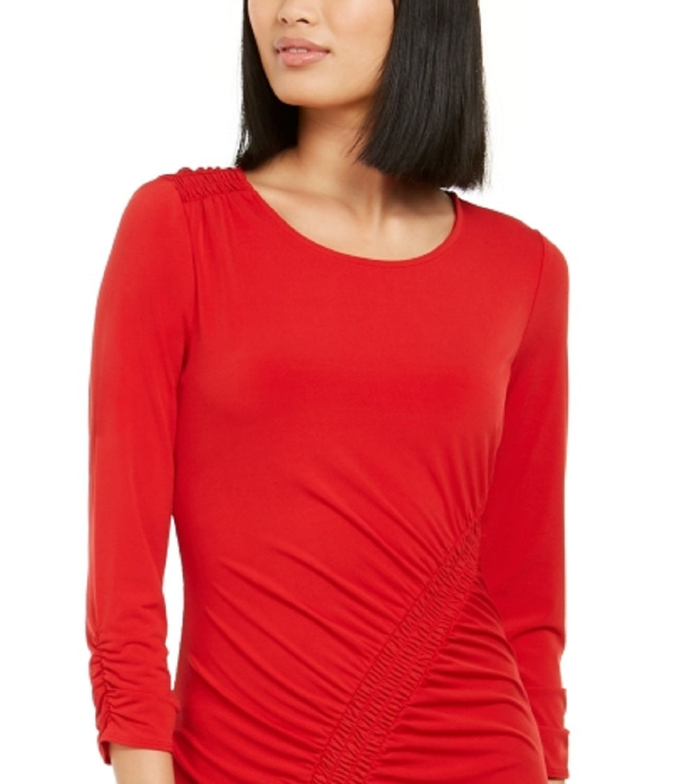 INC International Concepts Women's Asymmetric Smocked Midi Dress Red Size Large