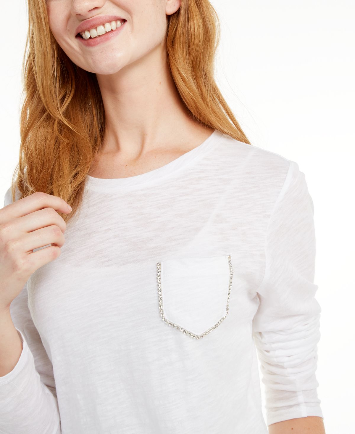 INC International Concepts Women's Cotton Rhinestone Pocket Top Black Size Medium
