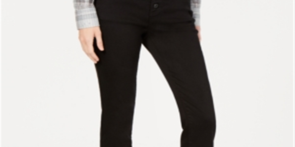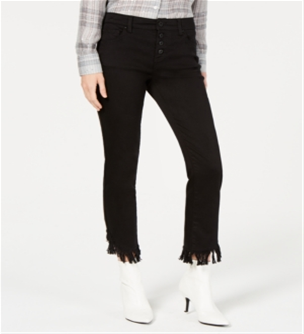 INC International Concepts Women's Curvy Fringe Hem Button Front Straight Leg Jeans Black Size 6