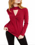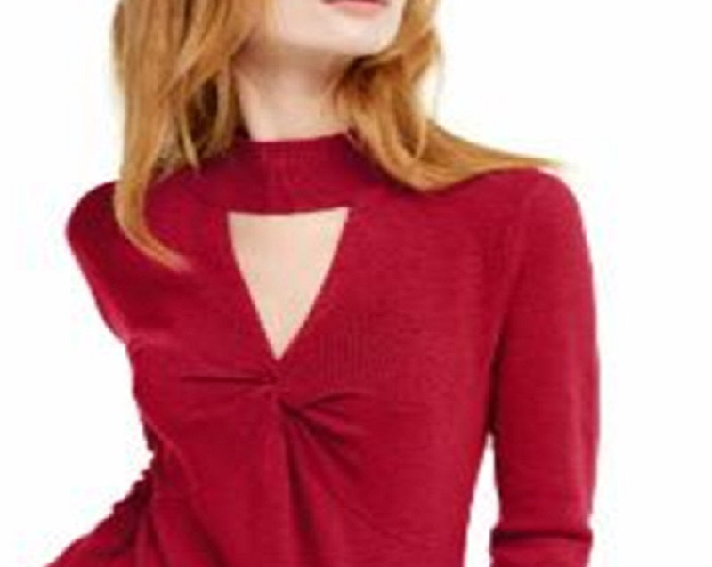 INC International Concepts Women's Cut Out Solid Long Sleeve Keyhole T-Shirt Top Red Size X-Small