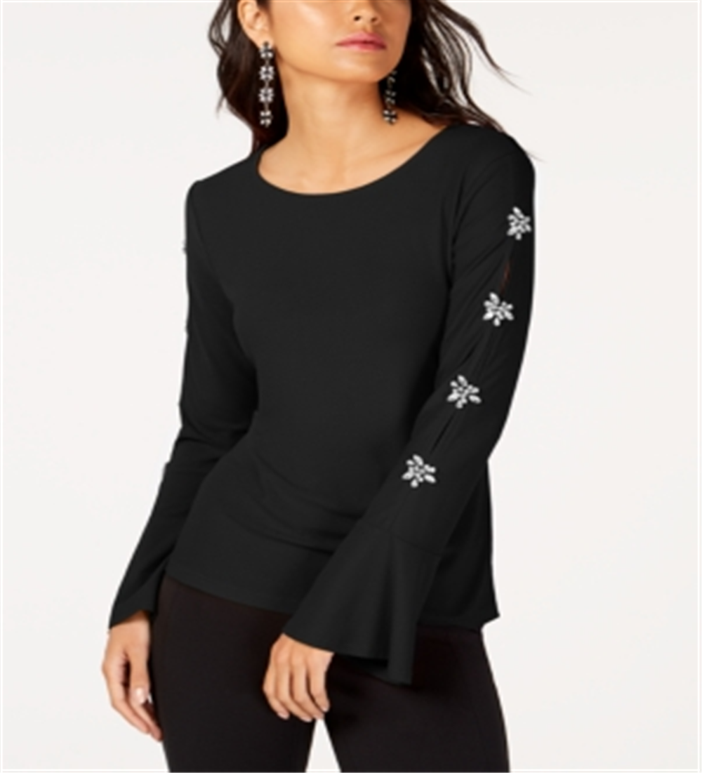 INC International Concepts Women's Embellished Sleeve Top Black Size XXL