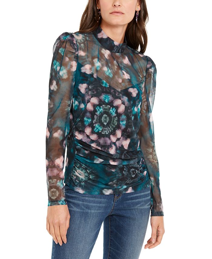 INC International Concepts Women's Floral Print Mock Neck Top Blue Size X-Small