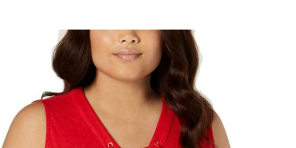 INC International Concepts Women's Lace up Sheer Tank Top Red Size Petite S