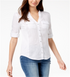 INC International Concepts Women's Linen Panel Button Down Top White Size Petite L
