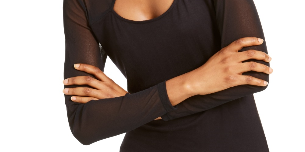 INC International Concepts Women's Petite Illusion Top Black Size Petite Large