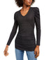 INC International Concepts Women's Ruched Shine V-Neck Top Black Size Large