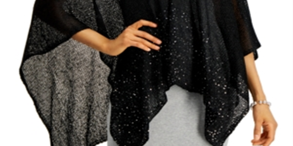 INC International Concepts Women's Sequin Border Knit Top Black Size Regular