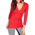 INC International Concepts Women's Solid Long Sleeve V Neck Blouse Top Red Size X-Large