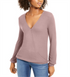 INC International Concepts Women's Textured Long Sleeve V Neck Top Pink Size Small