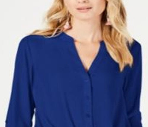 INC International Concepts Women's Twist Front Button up Top Blue Size X-Large