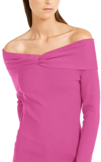 INC International Concepts Women's Twist Off-The-Shoulder Sweater Bright Pink Size Small